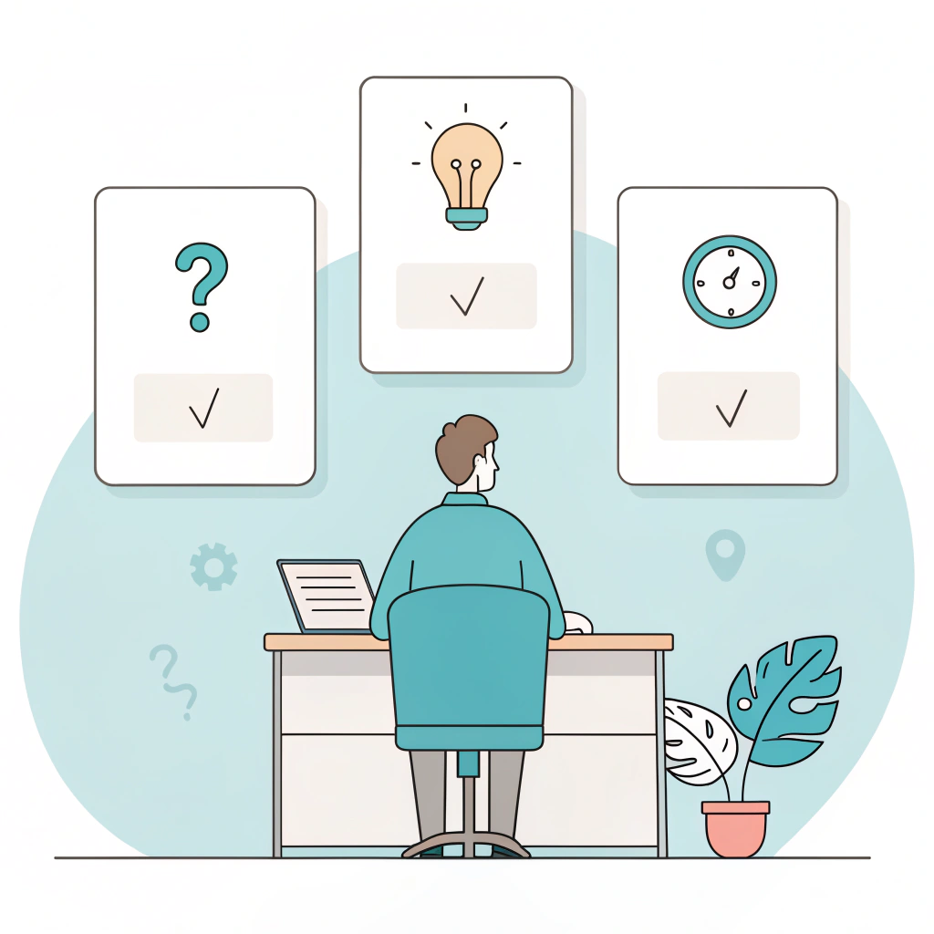 4 viikon ohjattu päätöksentekoprosessi. Rajaat vaihtoehdot, punnitset riskit ja mahdollisuudet sekä suunnittelet etenemisen seuraaville kuukausille.
